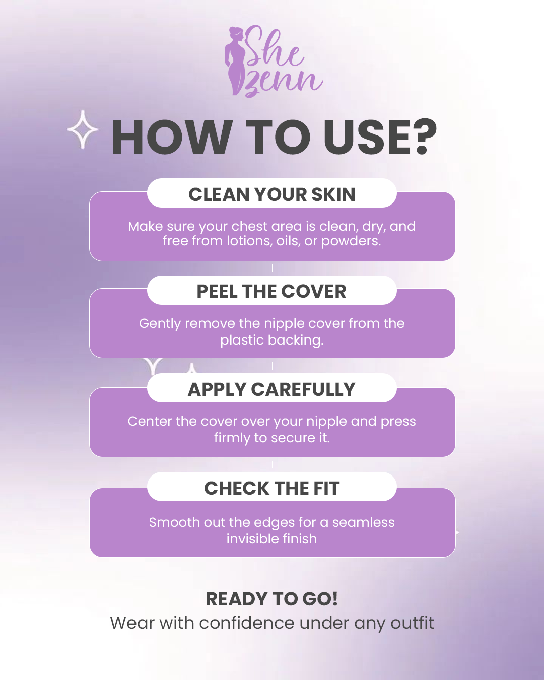 Achieve a flawless, invisible look effortlessly with just five simple steps. Our straightforward application process ensures smooth, secure coverage, providing comfort that lasts all day long. Whether it’s for a backless dress or a form-fitting top, step out confidently with the perfect finish that stays in place under any outfit. Say goodbye to wardrobe malfunctions and hello to seamless support, every time.
